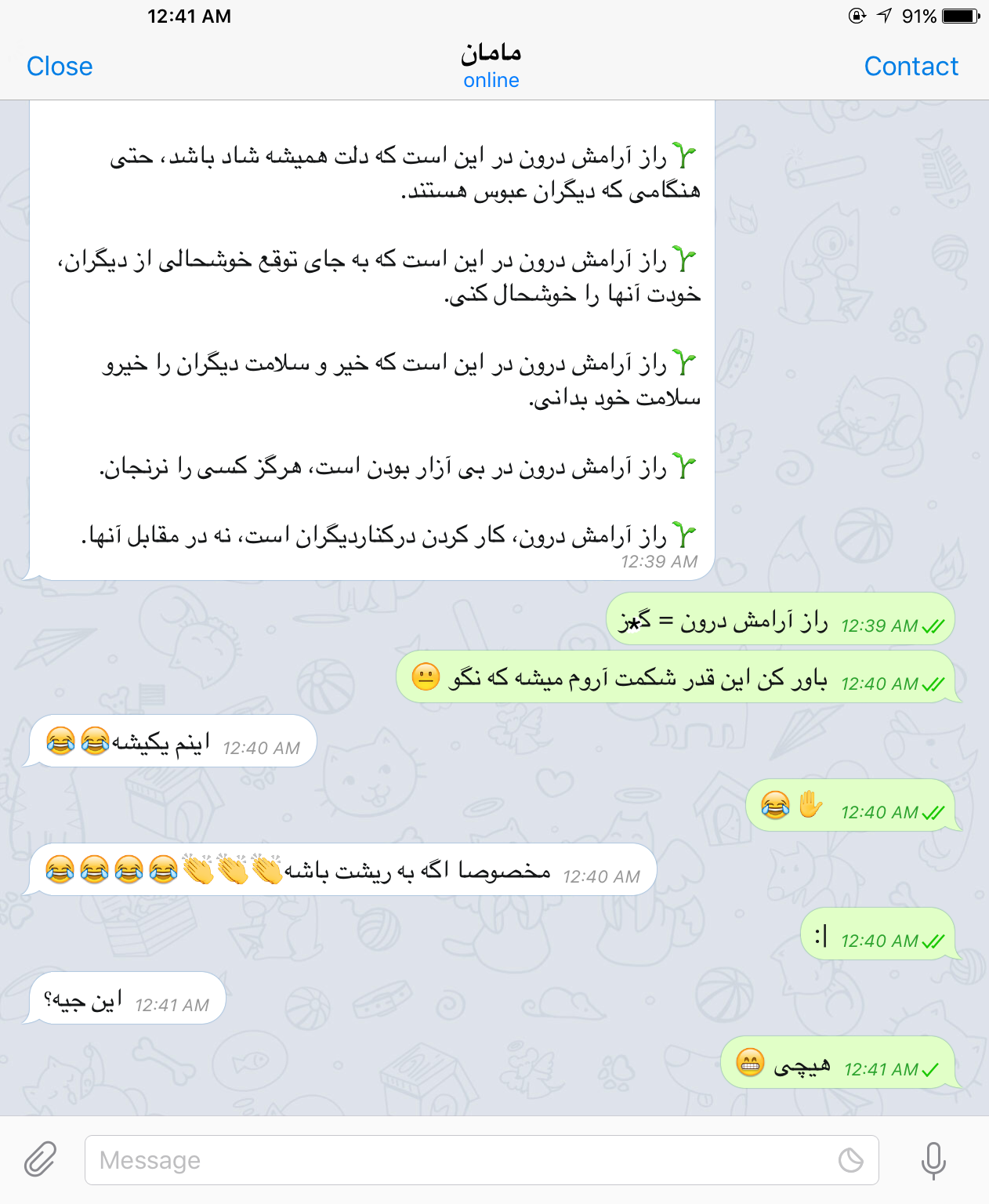 بعد از پنبه الکل و پماد و این حرفا رفم سمت موبایل گرامی که اصلا به زمین هم بر خورد نکرد چون جیبم زیپ دار بود و نیوفتاد و روشم نیومدم پایین !